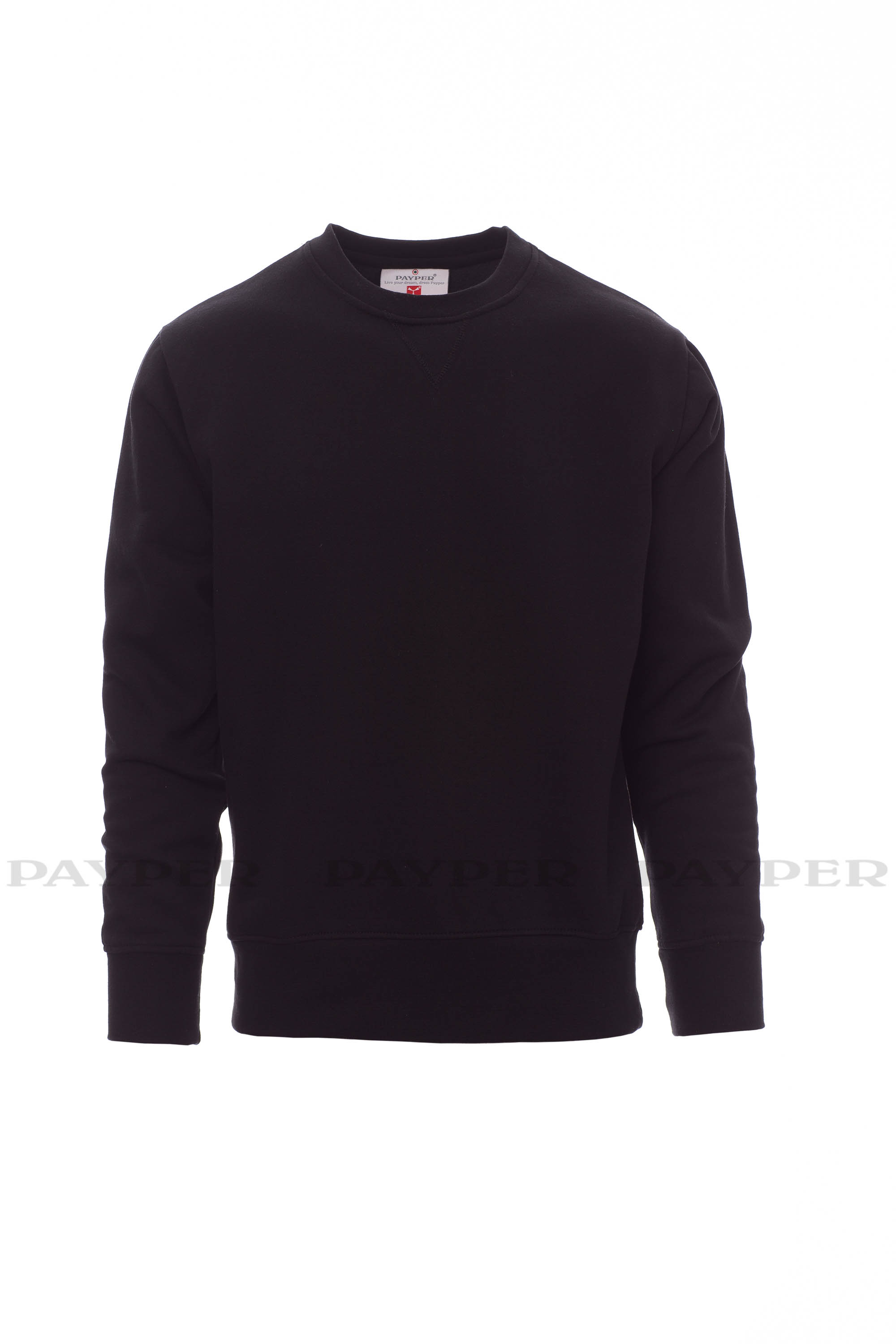 Sweatshirt mit Rundhalsausschnitt, V-Ziernaht am Ausschnitt, Kugelärmeln, elastischem Feinripp an Ärmeln und Taille, verstärkten Nähten.