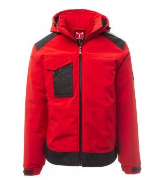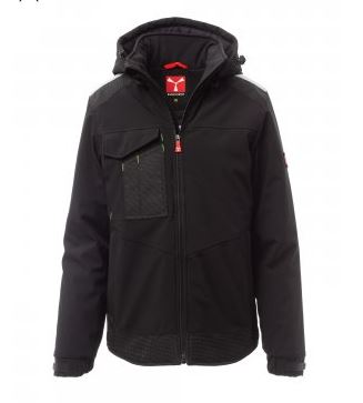 WP 8000 mm H₂O, MVP 5000 g/m² 24 h Wattierte Herren-Softshell, Reißverschluss mit „Semi-Auto-Lock“-Metallschieber und personalisiertem Schiebergriff. Abtrennbare Kapuze mit regulierbarem Kordelzug. Reflexband auf den Schultern. Elastische Ärmelbündchen mit Klettverschluss zur Weitenregulierung. Brusttasche mit Lock-System, Patte und Stifthalter. 2 Seitentaschen mit Reißverschluss. 2 Innentaschen: 1 Tablettasche mit Klettverschluss und 1 geformte Tasche mit Reißverschluss an der rechten Brust. Regulierbare Taille mit personalisierten Stoppern und reflektierende Paspelierung auf dem Rücken.